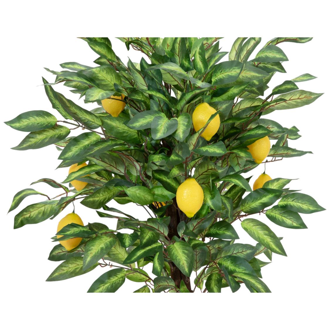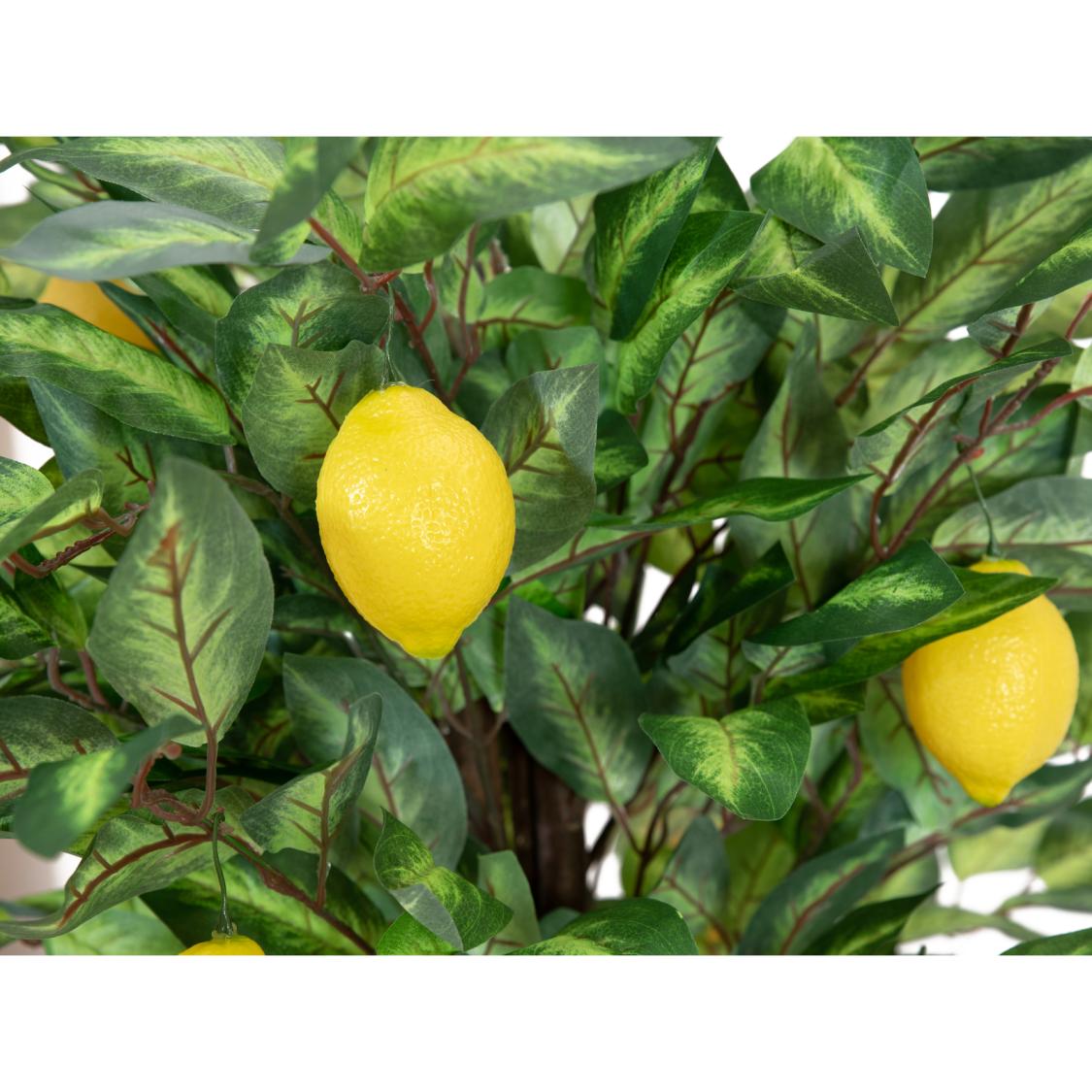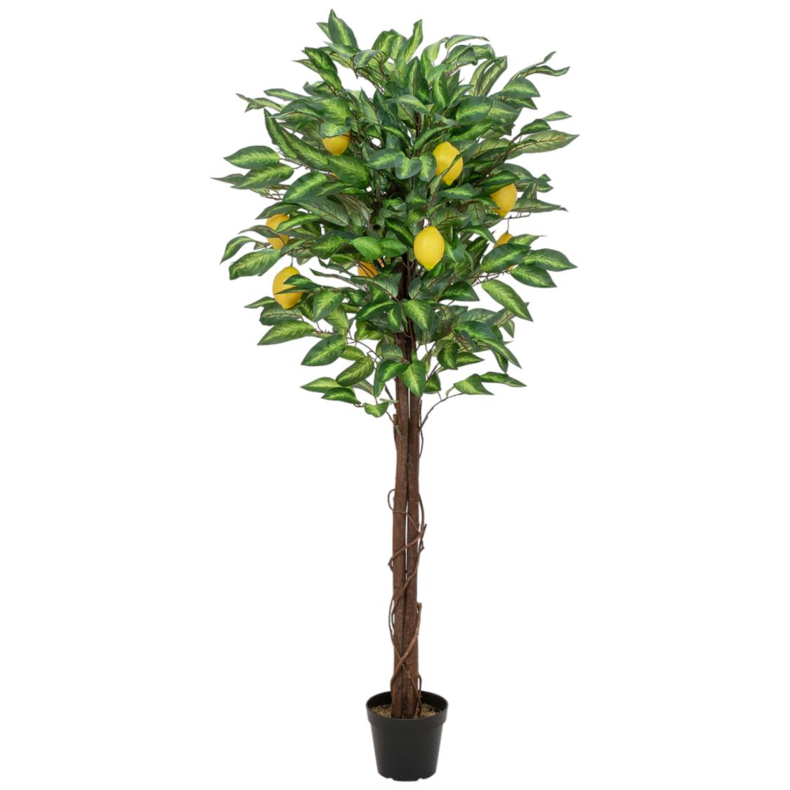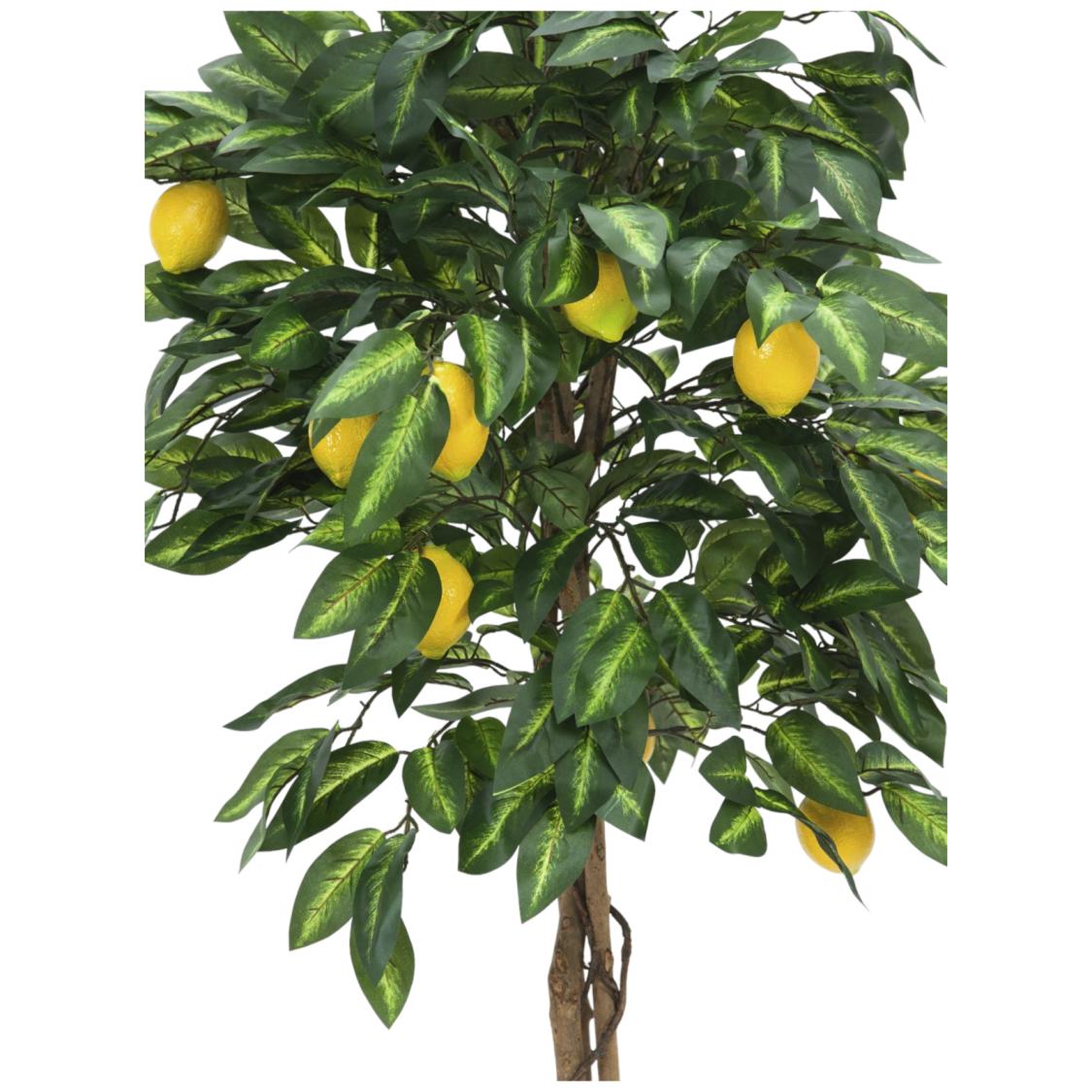 Få følelsen af middelhavet ind på din terrasse, på altanen eller i udestuen med dette utroligt autentiske, kunstige citrontræ. I modsætning til ægte citrustræer behøver du ikke bekymre dig om vinter og frost, da dette træ er 100% vedligeholdelsesfrit. De naturlige træstammer og de smukt formede blade af tekstil giver kronen et frodigt og livagtigt look. Modne, dekorative citroner af plast fuldender illusionen, og gør dette kunstige citrontræ til en holdbar og charmerende dekorationsplante.