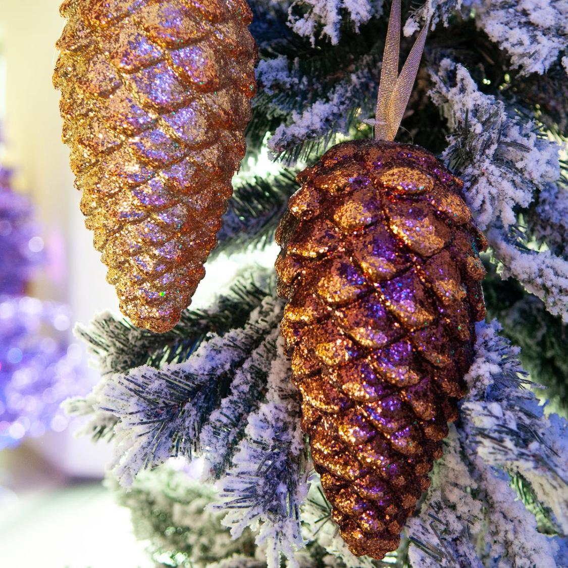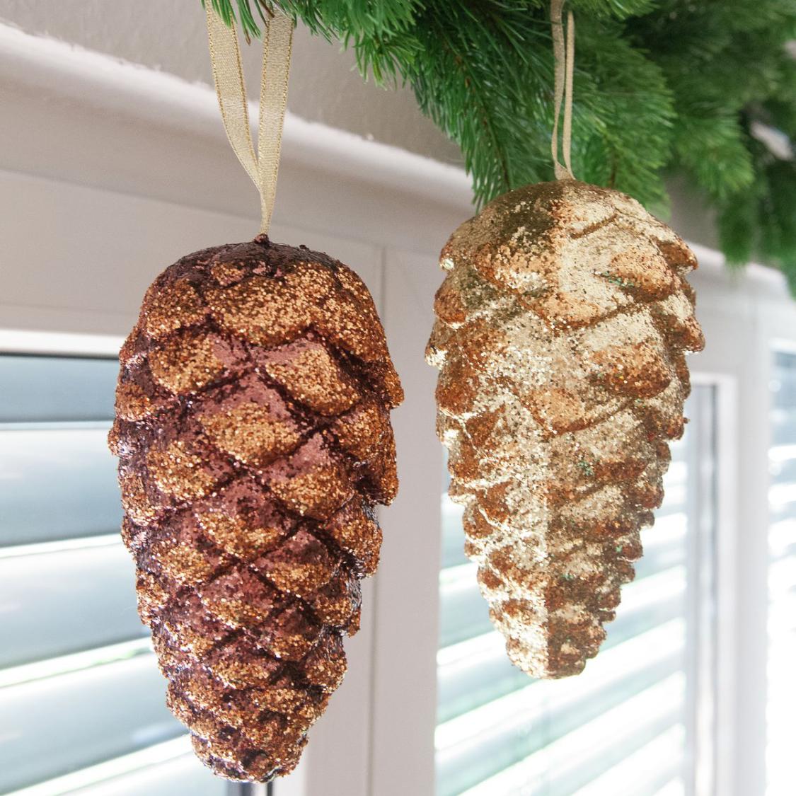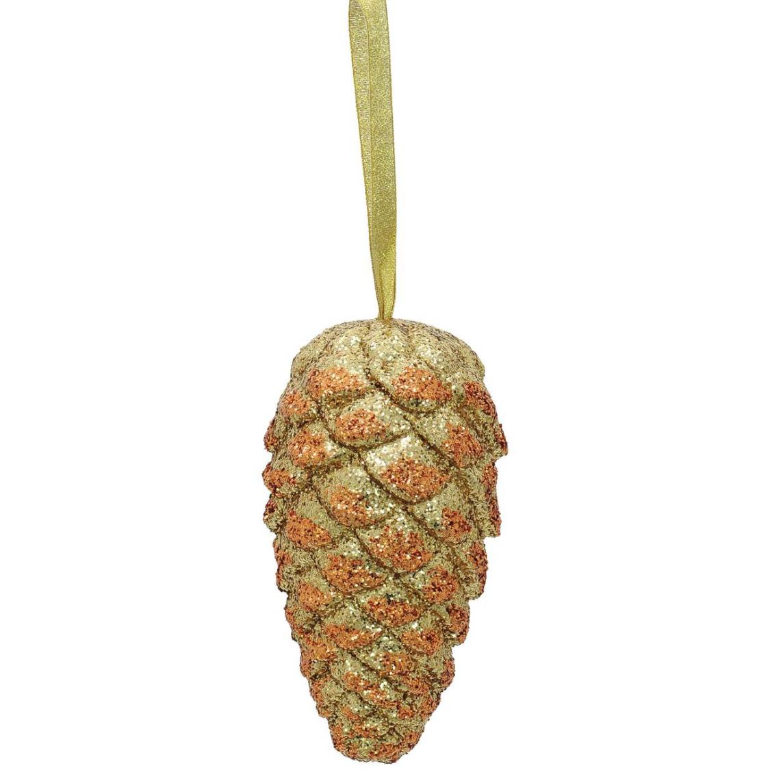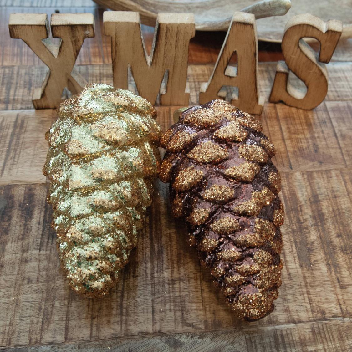 Grankogle Til Ophæng - Julekugle - Glitter Guld - h18cm