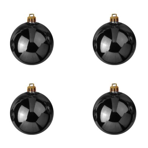Julekugle - Sort - Højglans - 10cm - 4 stk