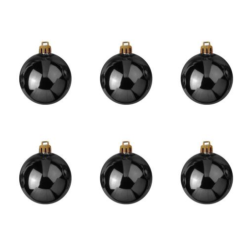 Julekugle - Sort - Højglans - 7cm - 6 stk