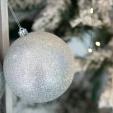 Julekugle - Sølv - Glitter - 20cm