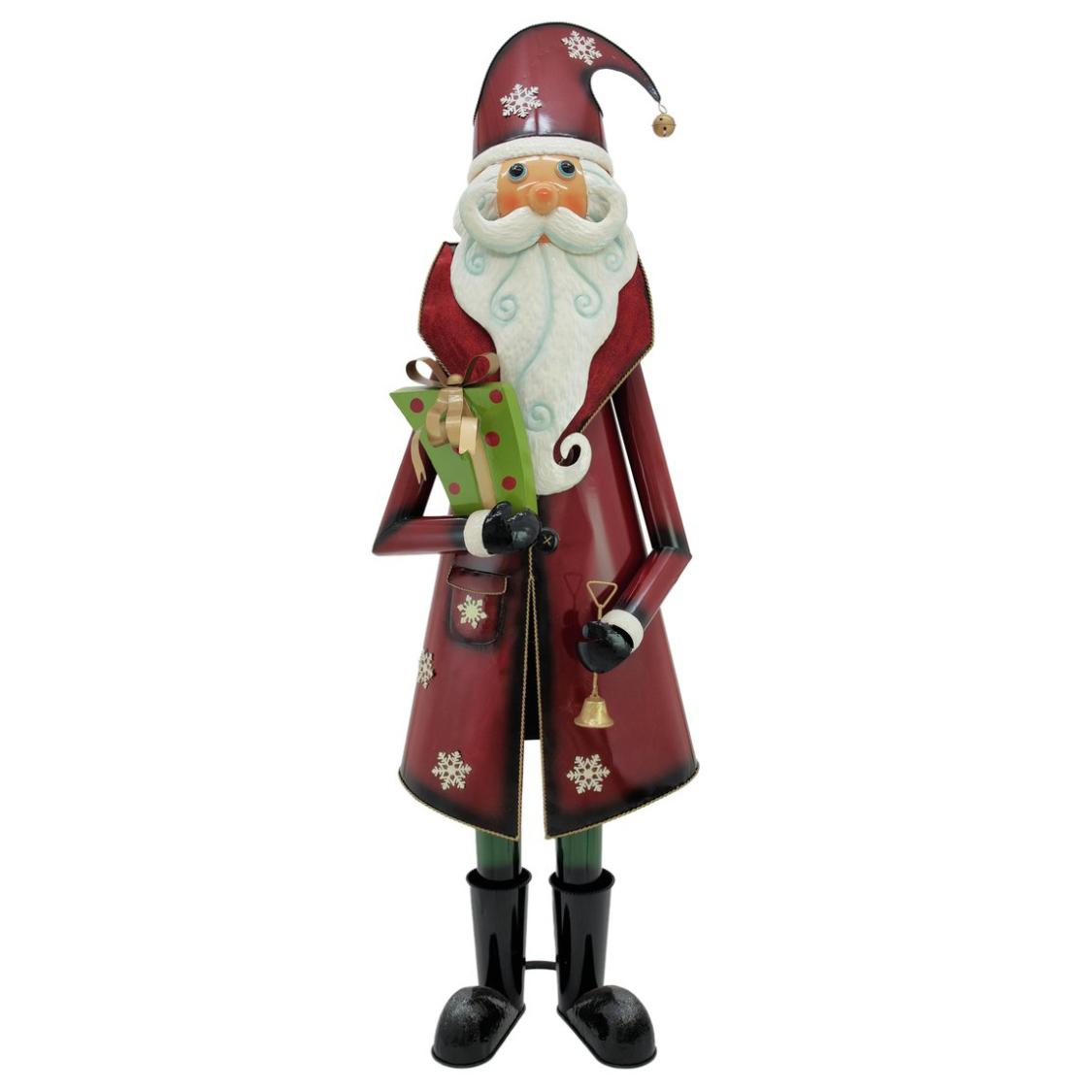 Håndlavet julemanden figur af metal, malet med farver, med gave og klokke
