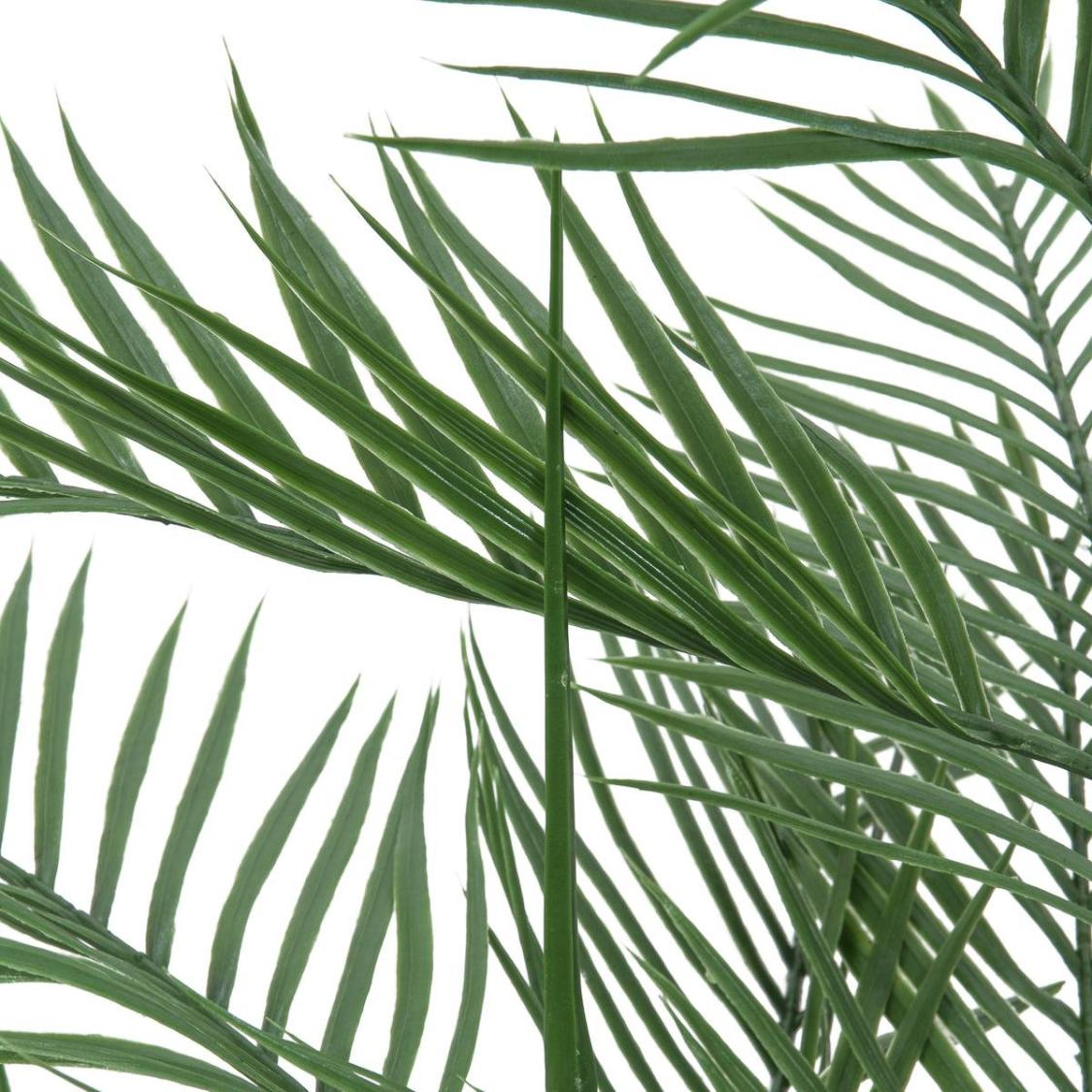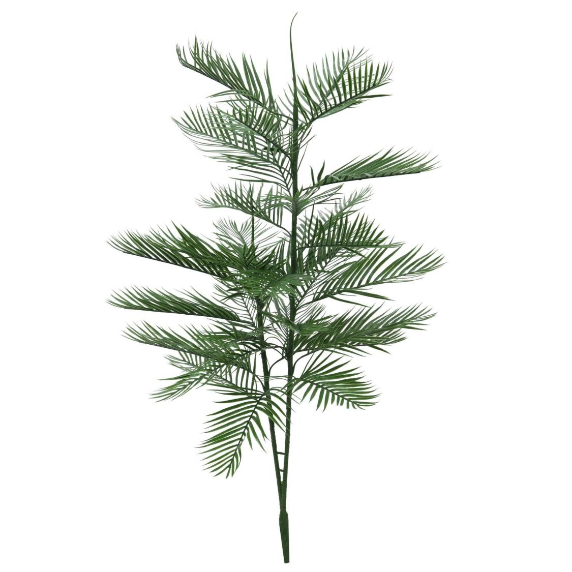 Denne palme har en en relativ hård plastik stamme, der kan sættes i krukker, skum, jord eller andet der kan holde den. Meget grøn og livliv 2 grenet palme.