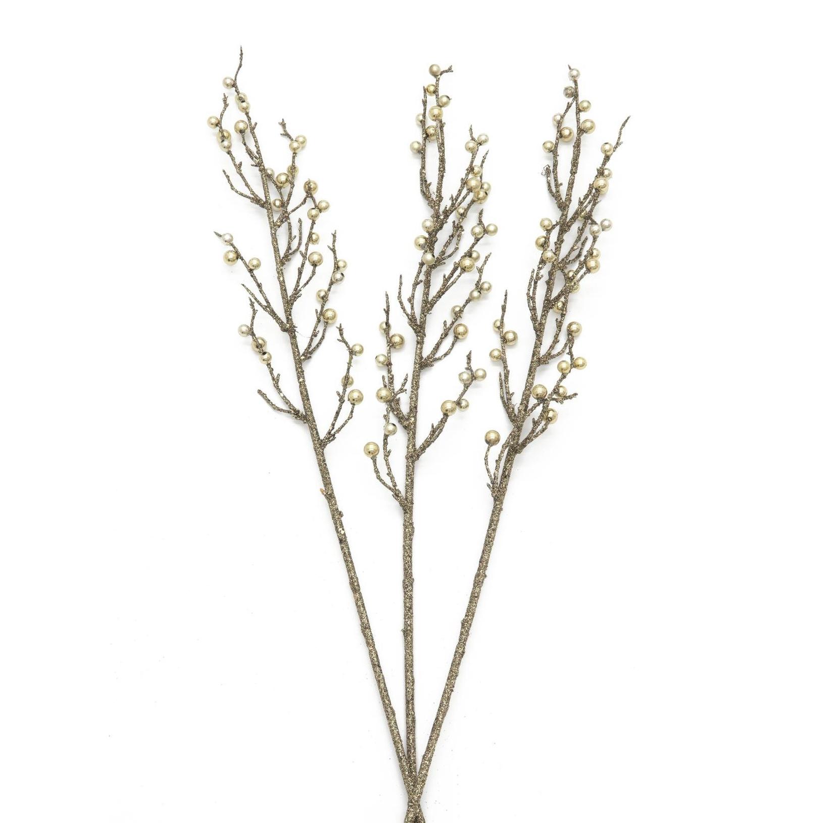 Gren Med Bær. Glitter Guld. 85 Cm. 3 Stk.