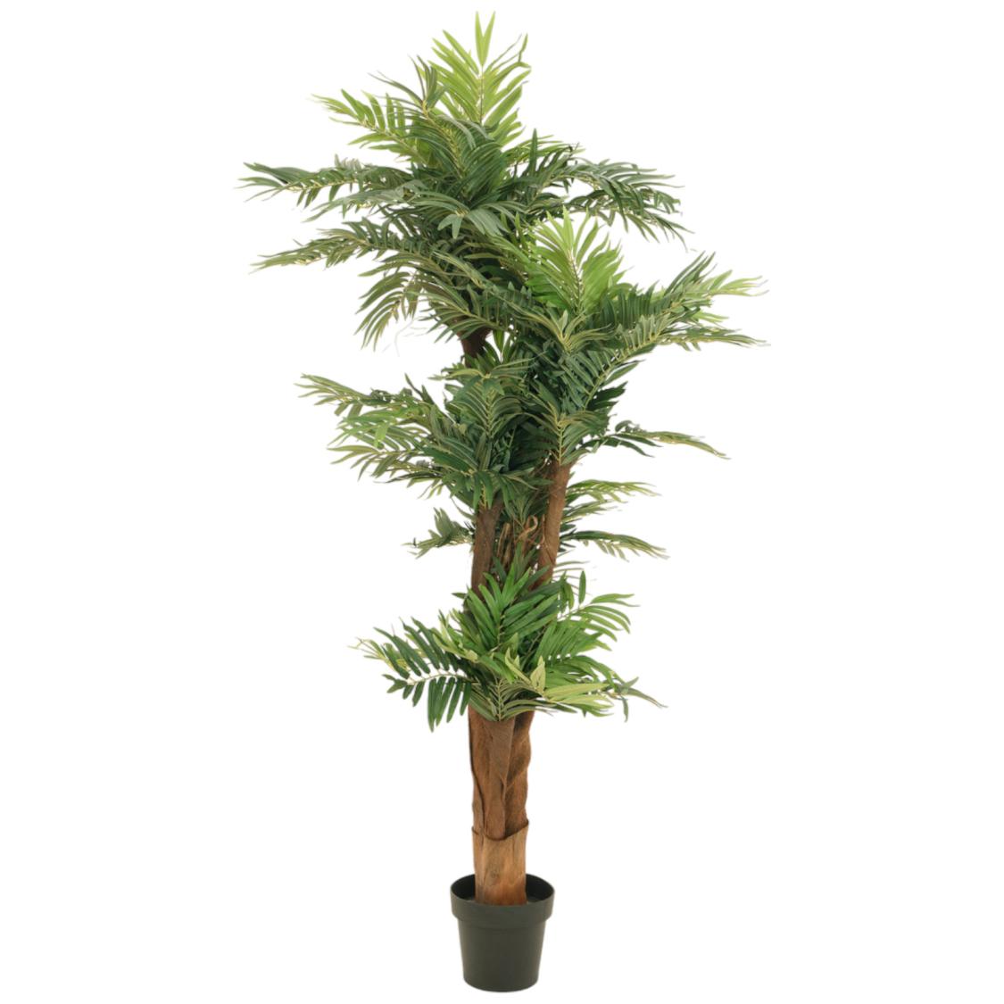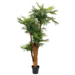 Create your own feel-good oasis with this classic artificial plant, which can be supplied in various sizes. What makes this Areca palm so special is its natural trunk, which is made from genuine palm fibre material. This gives the plant its natural appearance. The palm has four extensions with dense textile palm crowns, which can also be bent as required.