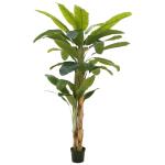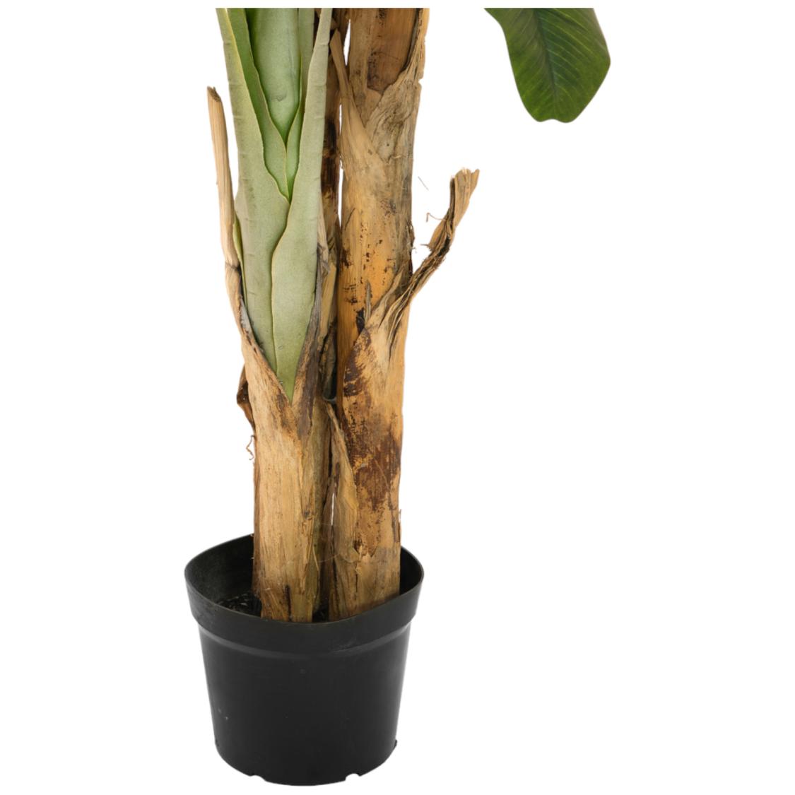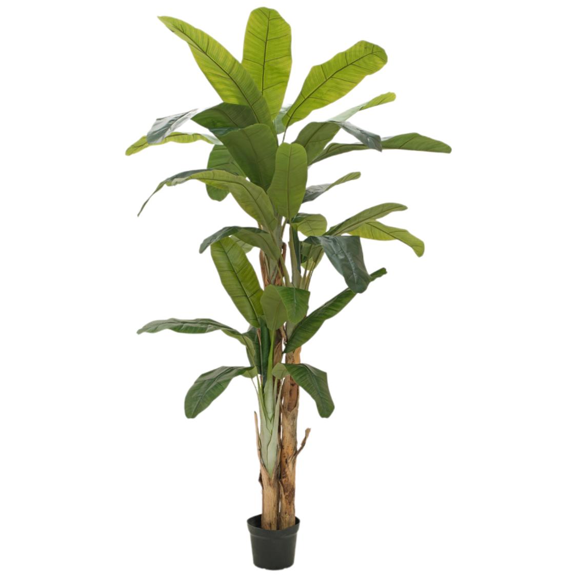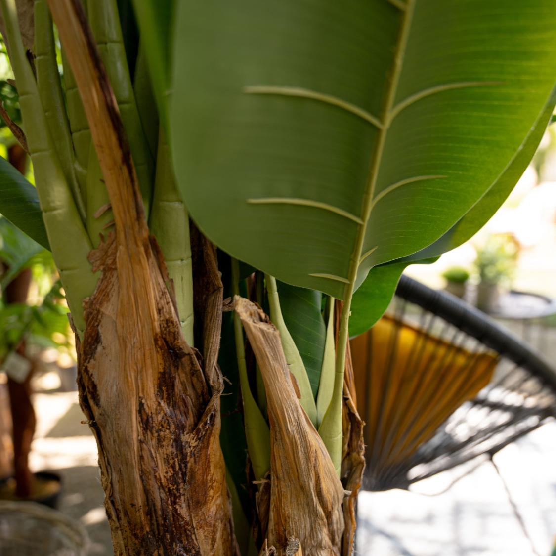Whether for your wellness area, the winter garden, a hotel complex or your private rooms; the 3-stem banana tree from Europalms is ideal as an easy-care decorative element. Thanks to the impressive overall height of approx. 240 cm, the subtropical-looking artificial plant cannot be overlooked. Its trunks are wrapped in dried banana bark. This gives the subtropical-looking artificial plant a very natural appearance. The dense leafage of the shrub was made of waterproof tarpaulin with the typical leaf embossing. As an option, we recommend treating the leaves at regular intervals with a UV-protection spray so that you can enjoy your banana plant for a long time. The banana tree has a total height of approx. 120 cm and is supplied in a basic gardener's pot, which gives the plant a stable stand when placed in a planter.