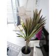 This easy-care alternative to the real dragon tree, botanically "Dracaena", was completely made of plastic. The long, slender leaves are made of high-quality tarpaulin. Their edges are colored in reddish brown and are arranged in expansive arches which originate from the artificial trunk. Altogether the Dracena of Europalms has 3 leaf heads, which form at the end of the high, upright standing PE trunk. With this artificial plant, you set stylish botanical accents to any interior trend, which is in particular beneficial, when the general conditions do not permit real plants. The Dracaena has a total height of approx. 120 cm and comes in a basic gardener's pot, which gives the plant a stable stand when placed in a planter.