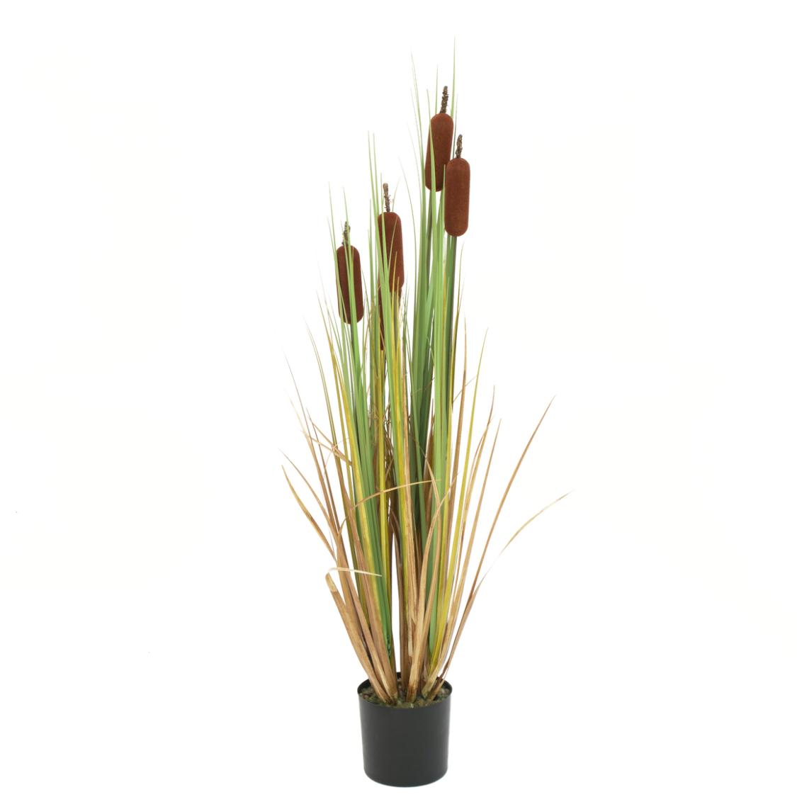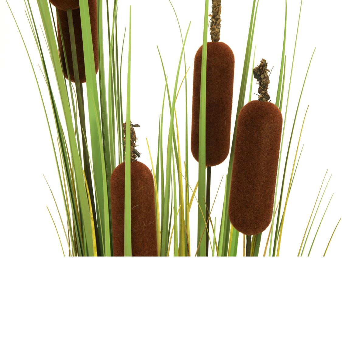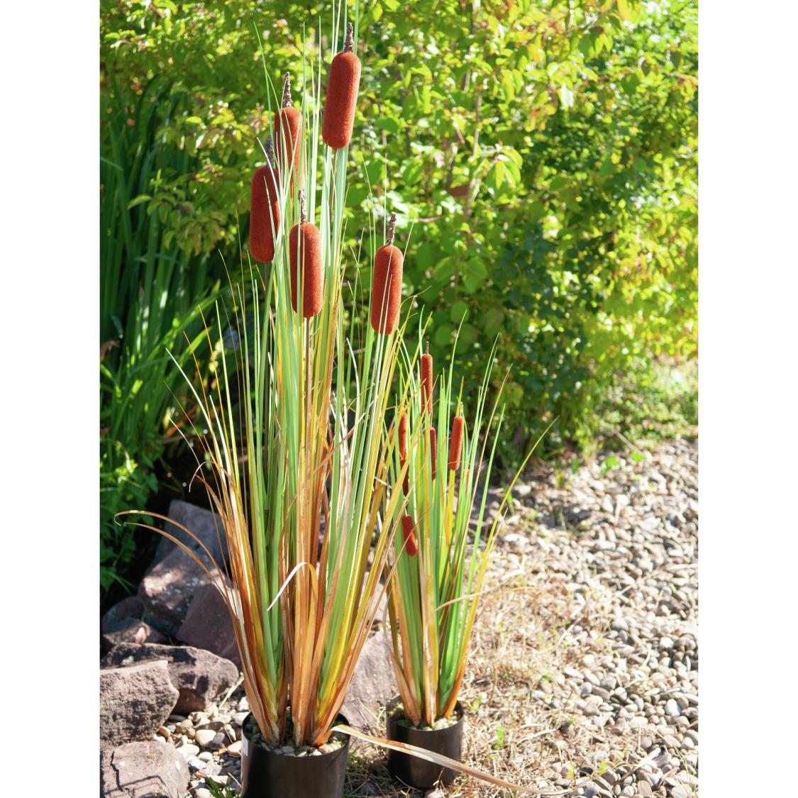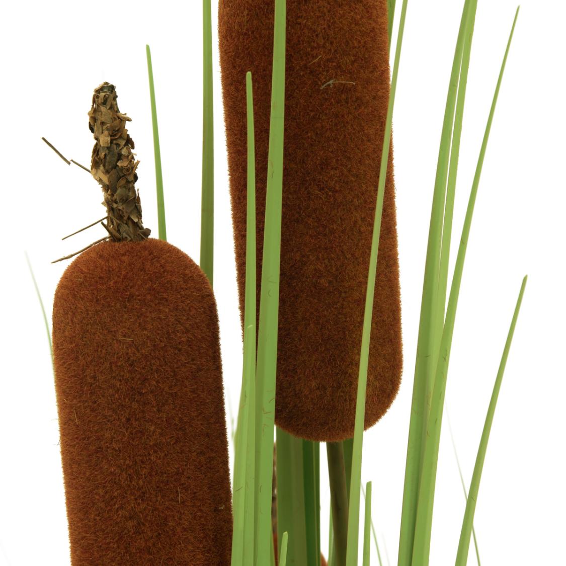 The bulrush, also known as lamp cleaner or cannon cleaner, is a particularly popular and decorative plant due to its eye-catching appearance. In floristry, however, only the dried inflorescences of the marsh and aquatic plant were used for autumn decorations or dry arrangements. In the case of Europalms' artificial bulrush, great importance was attached to a lifelike appearance. Starting with the stiffly upright growing, unstalked leaves in various shades of green and brown to the brown colored, cylindrical bulbs with their two-part inflorescence. The basic gardener's pot included in the delivery is covered with built-in pebbles. Thus it can be used both as a standing aid for a planter and as a decorative pot. The plant is available in different sizes and thus suitable for different purposes.