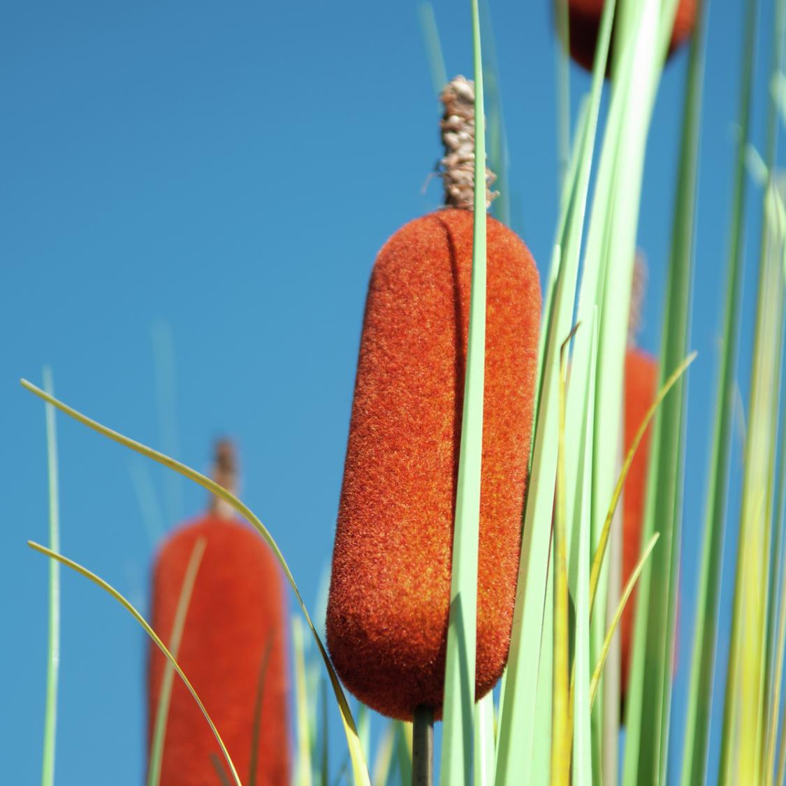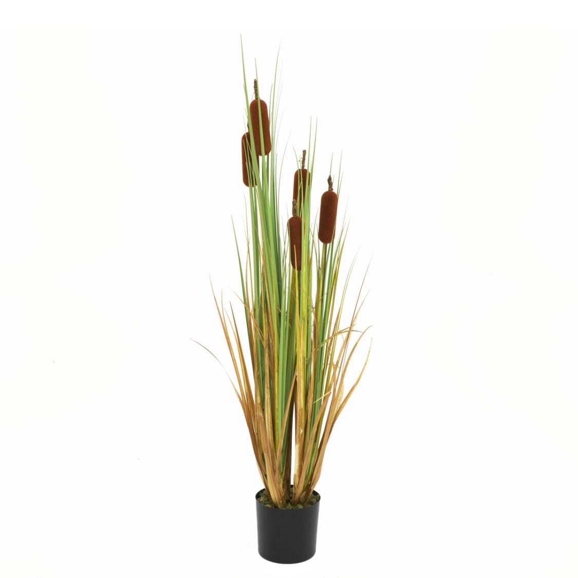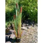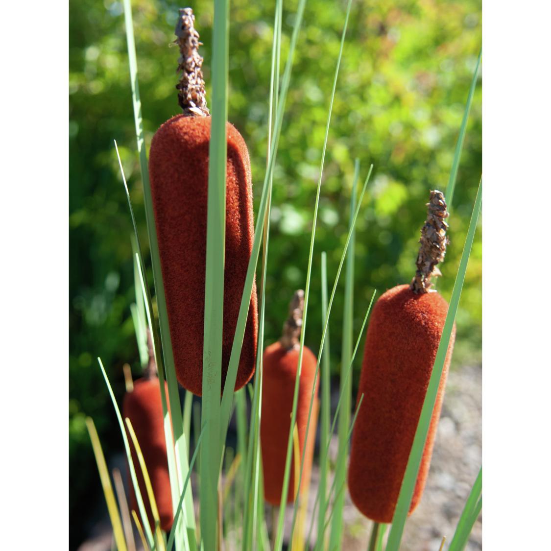 The bulrush, also known as lamp cleaner or cannon cleaner, is a particularly popular and decorative plant due to its eye-catching appearance. In floristry, however, only the dried inflorescences of the marsh and aquatic plant were used for autumn decorations or dry arrangements. In the case of Europalms' artificial bulrush, great importance was attached to a lifelike appearance. Starting with the stiffly upright growing, unstalked leaves in various shades of green and brown to the brown colored, cylindrical bulbs with their two-part inflorescence. The basic gardener's pot included in the delivery is covered with built-in pebbles. Thus it can be used both as a standing aid for a planter and as a decorative pot. The plant is available in different sizes and thus suitable for different purposes.