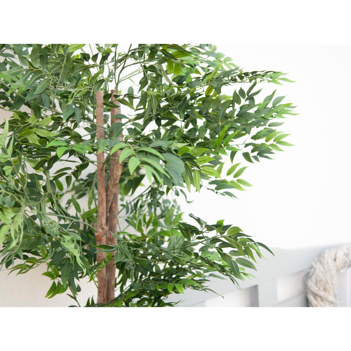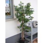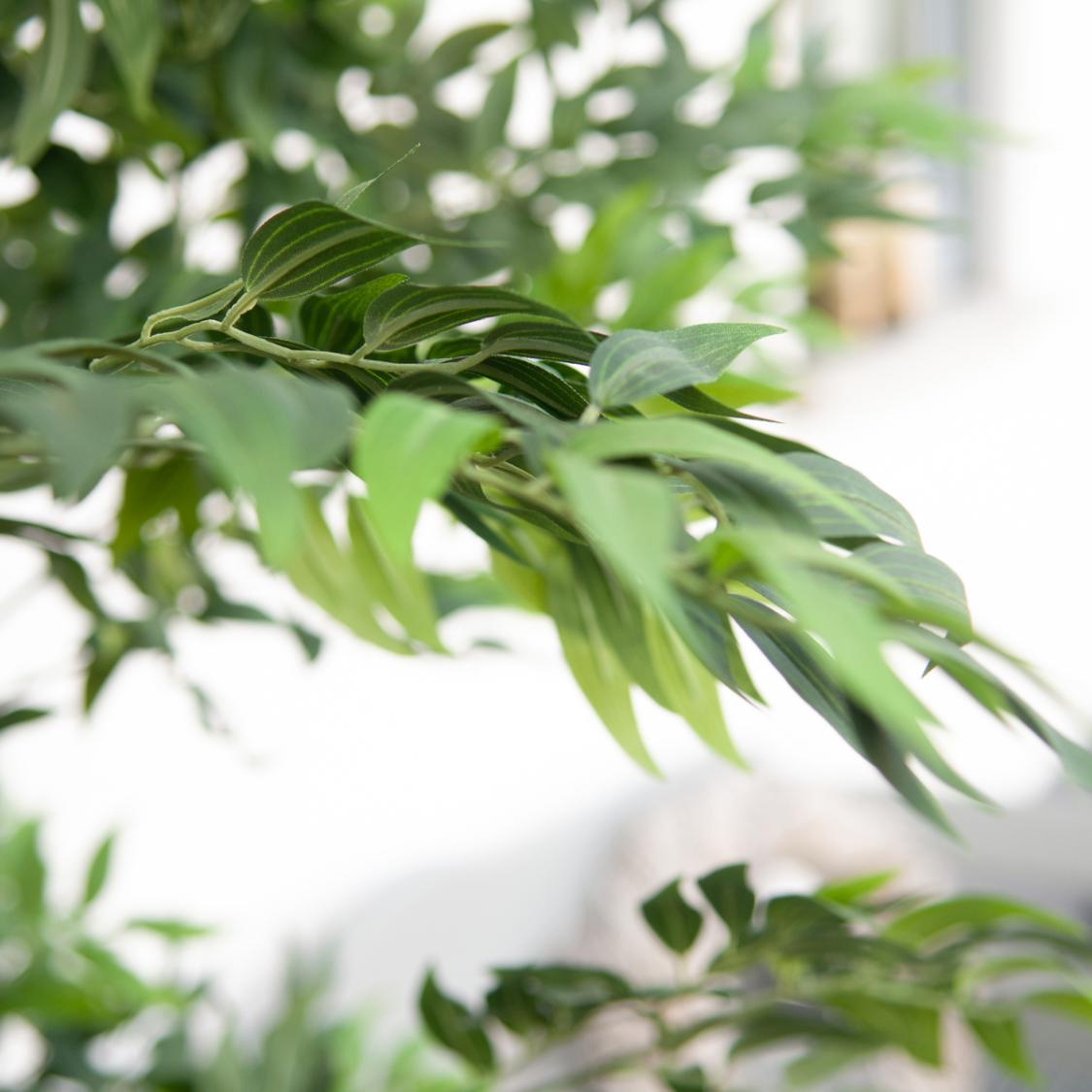 The special feature of this artificial birch fig from Europalms are the long leaves made of high-quality textile material. They earned it the name "longifolia", which means "long leaf". The processing of real wood trunks and the lifelike reproduction of the tree crown give the evergreen artificial tree its natural appearance. The leaves can be bent into shape (further apart = more voluminous) according to location and need. With this noble version you have a timeless, stylish decoration, which upgrades and enlivens your premises. The Ficus Longifolia has a total height of approx. 165 cm and is already supplied in a basic gardener's pot, which gives the plant a stable stand when placed in a planter.