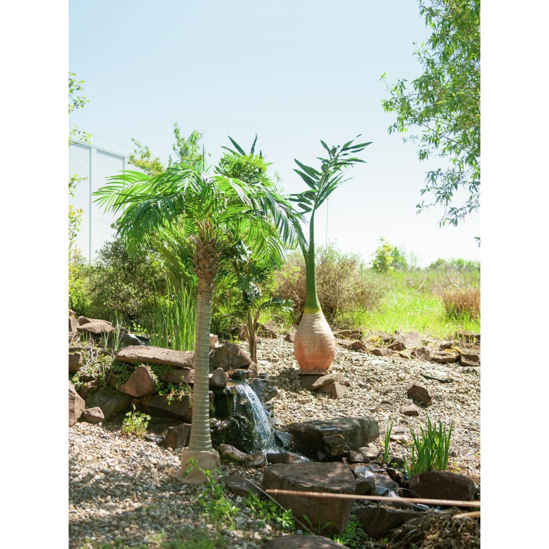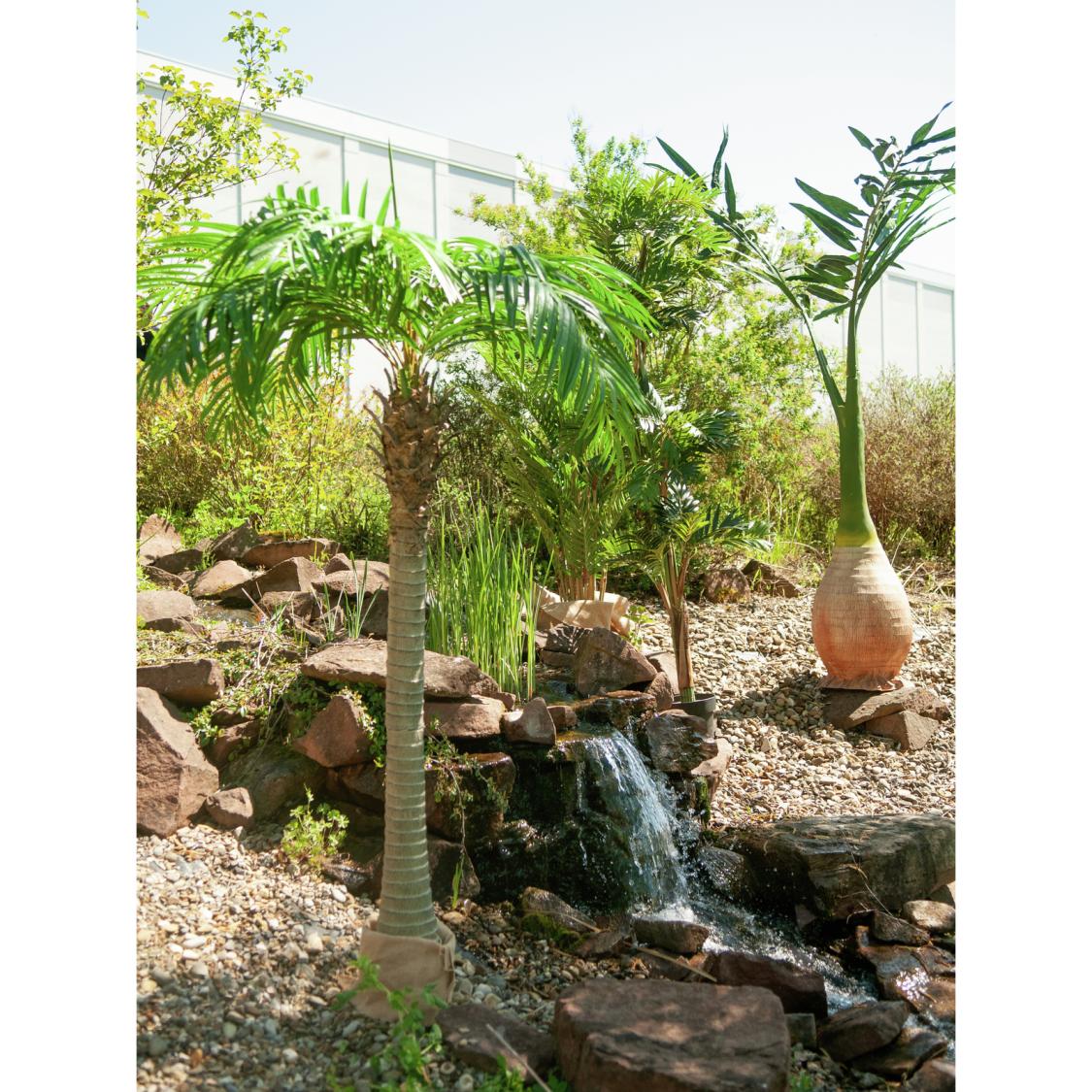 The Phoenix Palm from Europalms is the ideal companion for trade fairs or events where there is often not much time for elaborate decoration. The tuber trunk of this phoenix palm is made of high-quality plastic, reinforced with glass fibre, and also serves as a stand. A cumbersome potting into a cachepot is therefore no longer necessary and the artificial tree is quickly ready for use.
