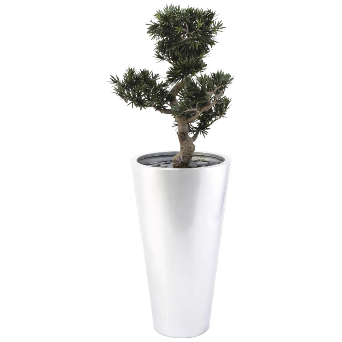 Potte. Tragtformet.. Aluforstærket Plastik. 69Cm. Skindende-Sølv