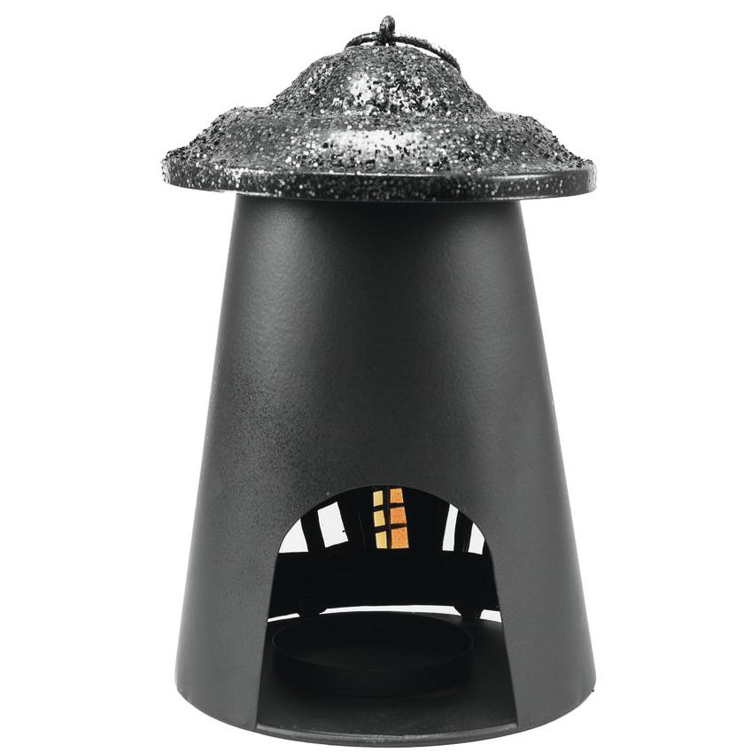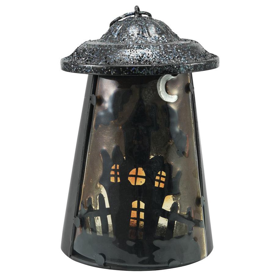 Lantern with haunted house and spiders