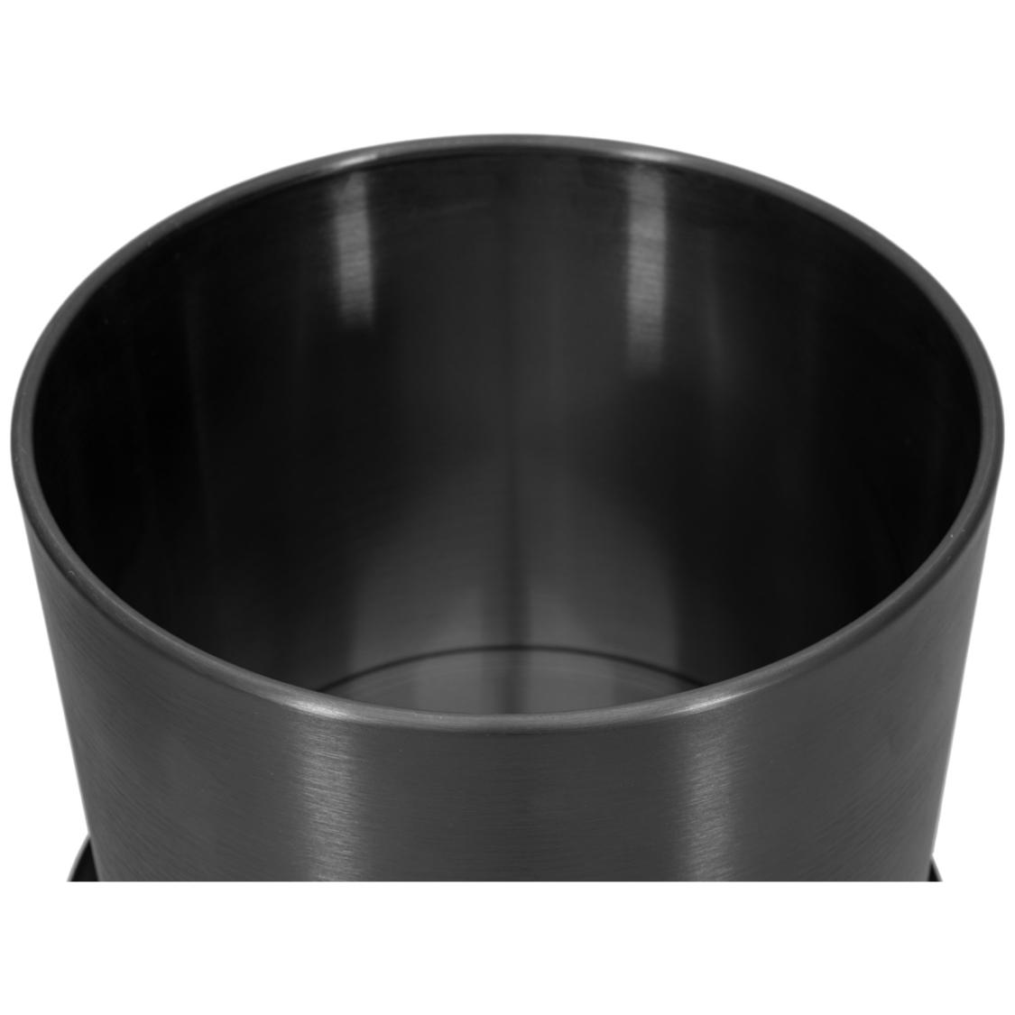 Bund: 3 x hjul 2 med bremselås Materiale: Rustfrit stål, børstet Farve: Antracit, mat, børstet Indvendige mål: 26 cm x Ø 28,5 cm Varetype: Potteskjuler Dimensioner: Højde: 31,5 cm Diameter: Ø 30 cm Vægt: 2,70 kg